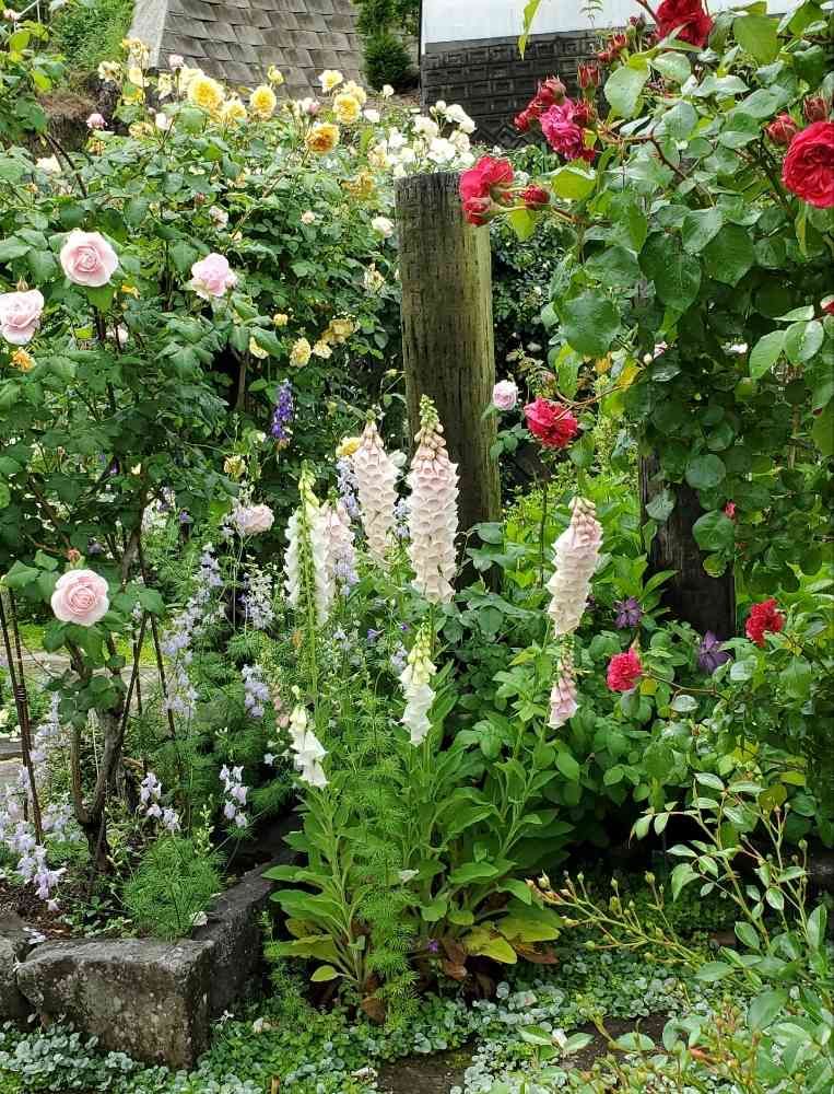 薔薇の中のジギタリスやっぱり素敵ですね〜🤩
