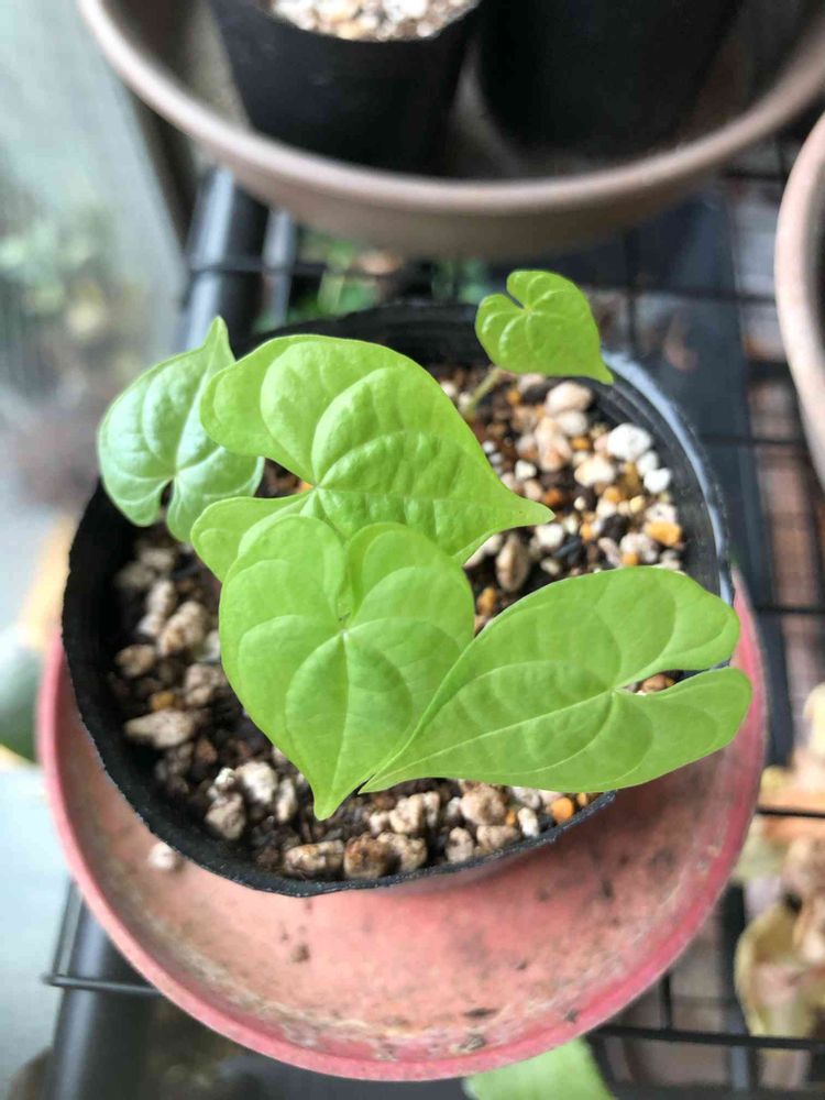 ちょっとマイナーなメキシコ亀甲竜🐢5粒撒いて一つも発芽せず諦めていたら、1ヶ月位して突然全部出てきた∑(゚Д゚)発芽スイッチは温度かな?やはりアフリカのものとは葉の感じが違います。