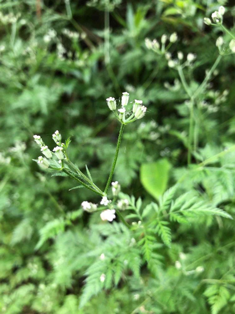 自然公園の川の近くの日陰で見つけたのはセントウソウかと思いましたが、同じセリ科のヤブジラミだと教えていただきました。