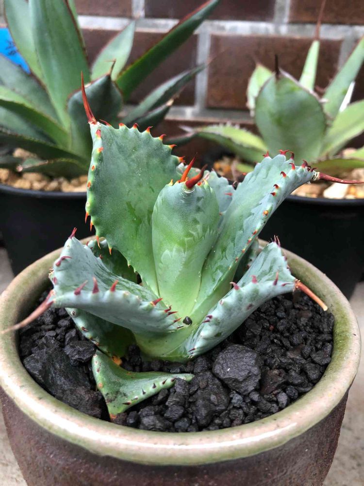 アガベショップPCPさんのDM販売で購入のカキコを信楽焼の植木鉢に植えました。