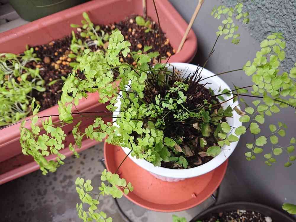 カットしてたアジアンタムから小さい葉っぱが増えてました😊