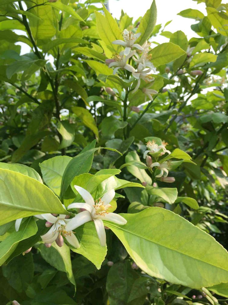 3年目のレモンの木に花がたくさん咲きました😊蕾は淡いピンク色ですが咲くと白に☺️