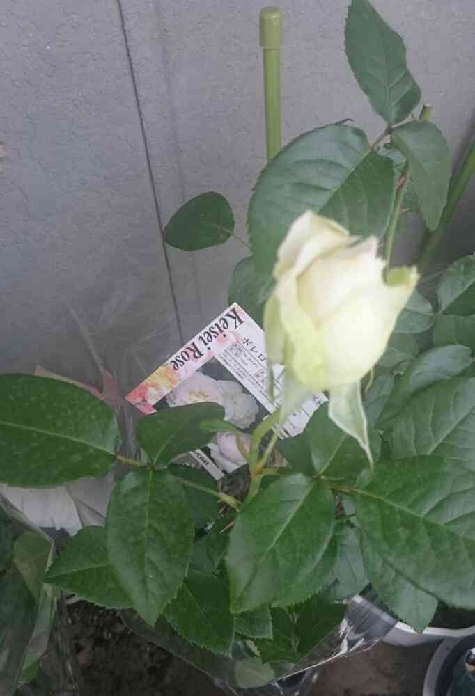 予約していた新苗ボレロが到着❤蕾が突いていて今にも咲きそう♪もう少し開いたら切ってあげなきゃ。この時点ですっごいいい香りが…レモンの様な爽やかさ。フルーティ香との事だけどブルー香に近い物を感じました。開くと甘さが出てくるのかな?