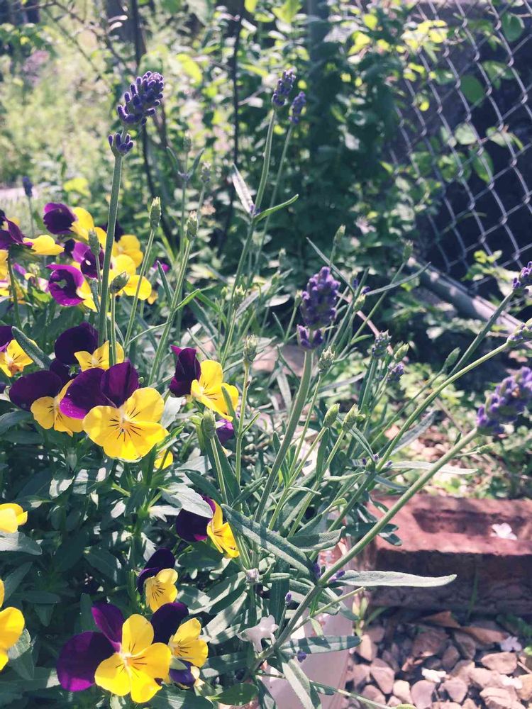 虫にやられてしまって刈り込んだラベンダー、やっとお花見られました。ツンツンとかわいらしい姿♡