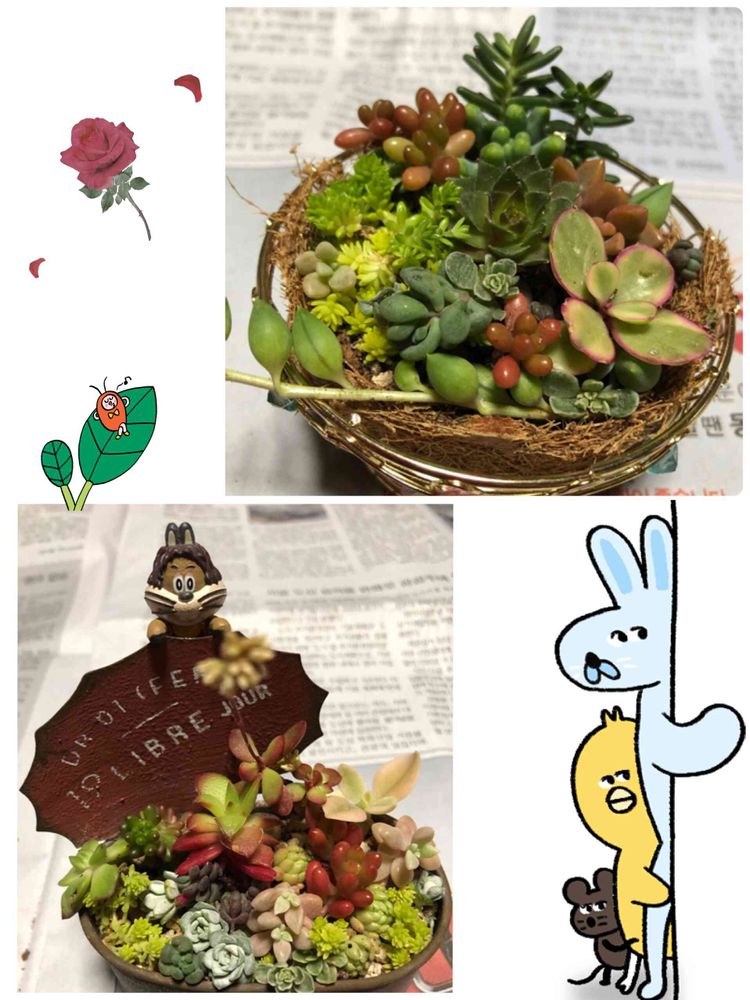 先日皆さんの真似っこして、小さな寄せ植えに挑戦してみました👀