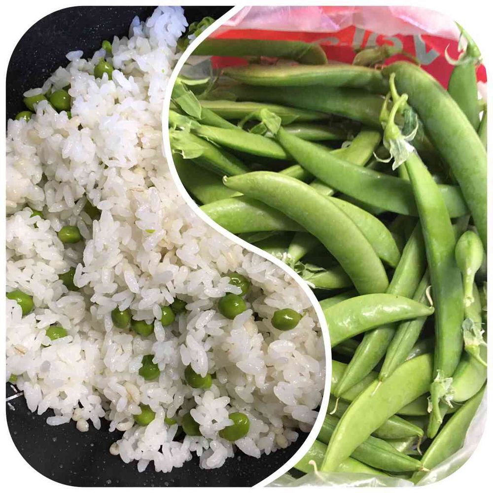 スナップエンドウの豆を大きくしてさやから出してグリンピースの代わりにしました。