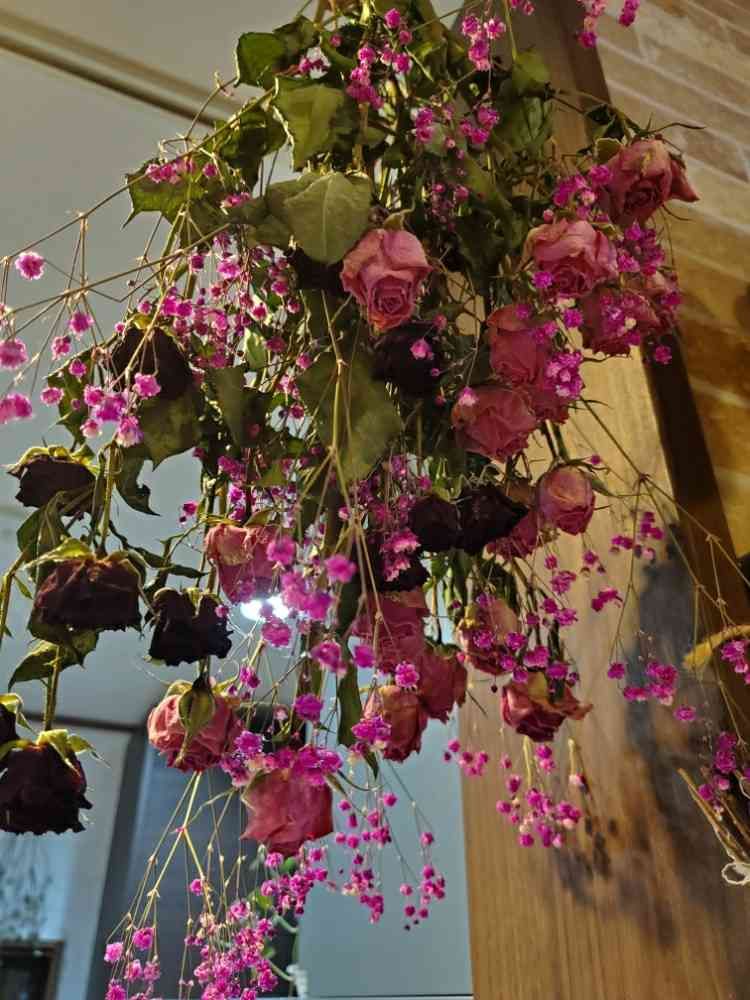 赤、ピンクの薔薇😂ピンクのカスミ😂自分の好きな色、好きな花のドライ💓💓