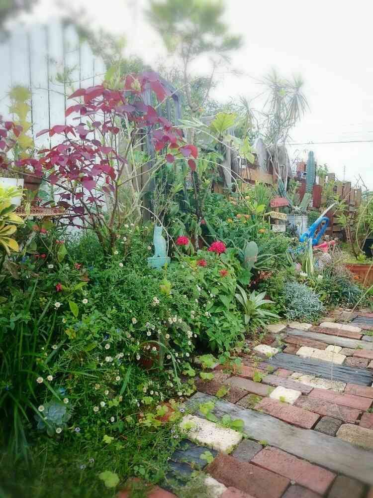 玄関アプローチのチョコレートリーフが綺麗です(*´∀`)♪冬場は葉っぱを落とし、、どこにあるのかも分からなかったんだけど😄立派に復活だ❗
