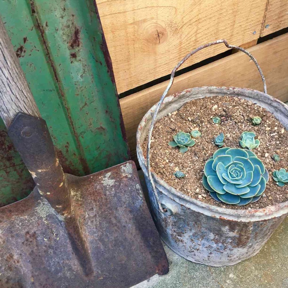 ジャンクなバケツを貰ったので七福神丼を夢見て七福神を植えました。まだまだショボいけど大きく育つとイィなぁ💕