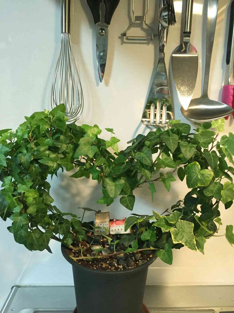 ワイヤーに添わせたハートアイビーは元気になり、ここまでモサモサに。