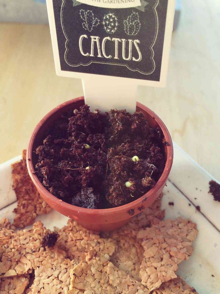 3週間くらい前にやったガチャポンのサボテンの芽が出た!