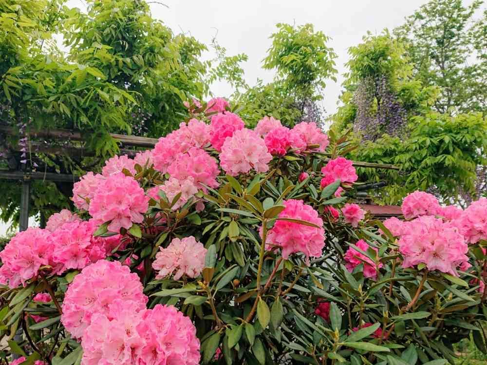 ちょうど藤棚の下に石楠花と牡丹が植えてあるので