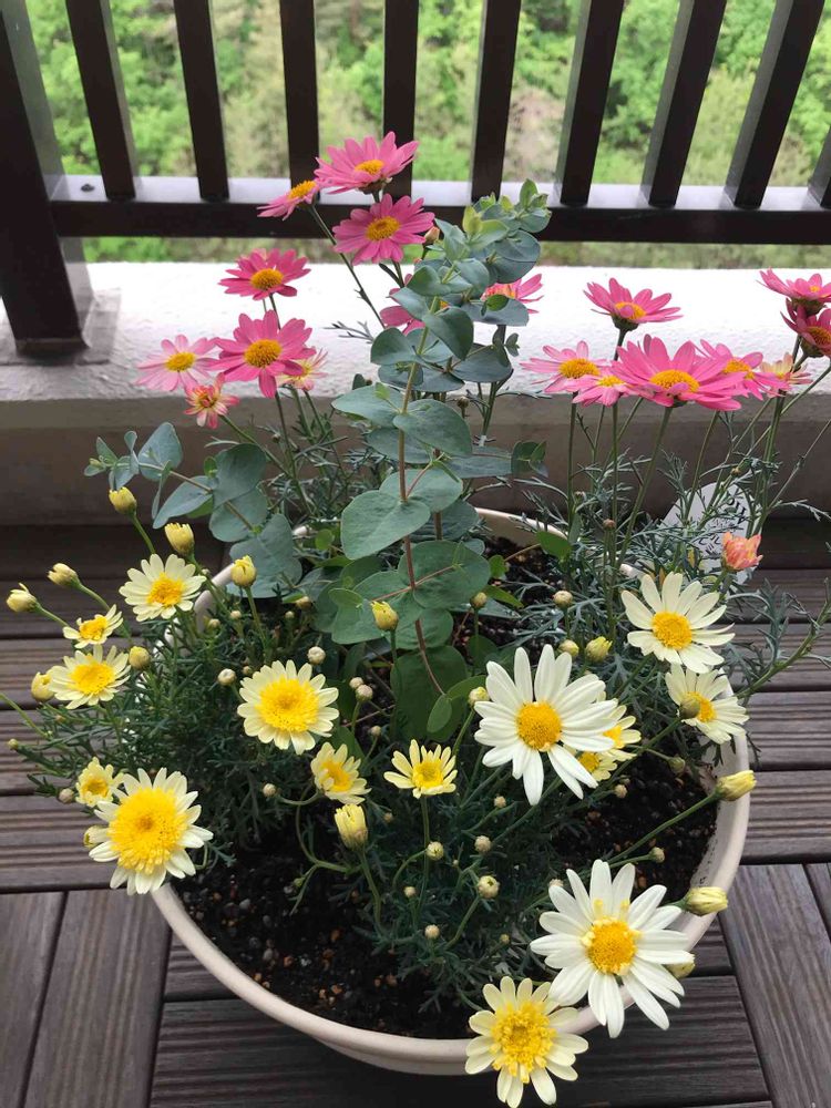 #寄植え#マーガレット#ユーカリ