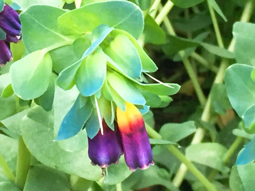 セリンセ・マヨールは、ロウ質の光沢を持つ筒状の花をぶら下がるように下向きにつける一年草です💜