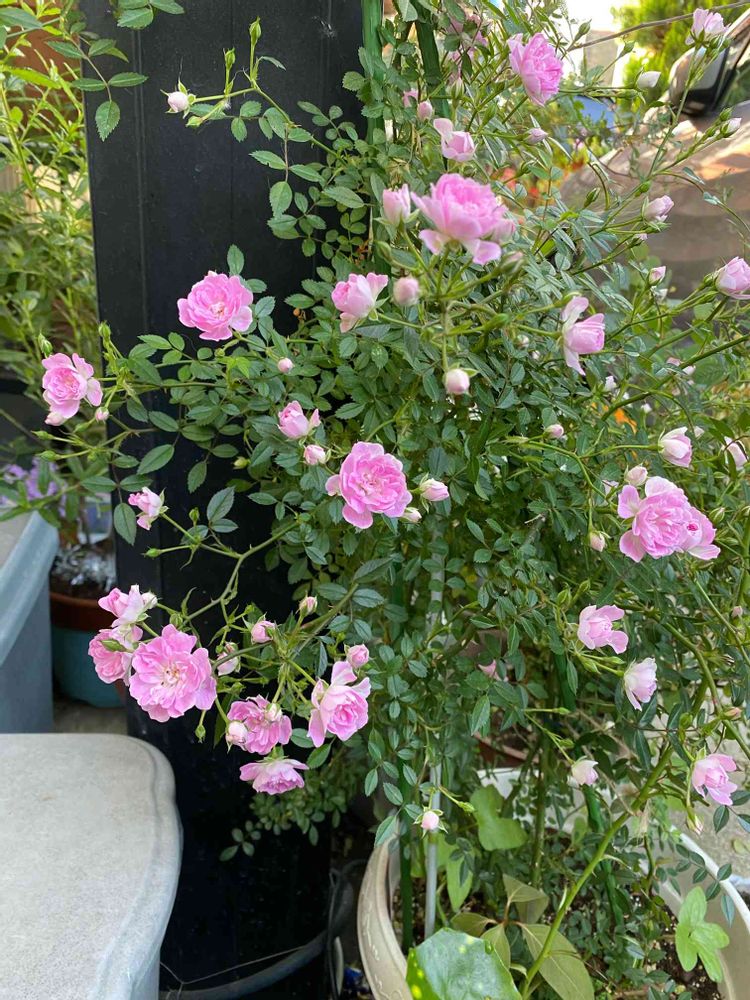お隣さんとの境のフェンスに置いてたのですが、伸びすぎてお隣で咲いちゃうので今年は場所を移しました😆