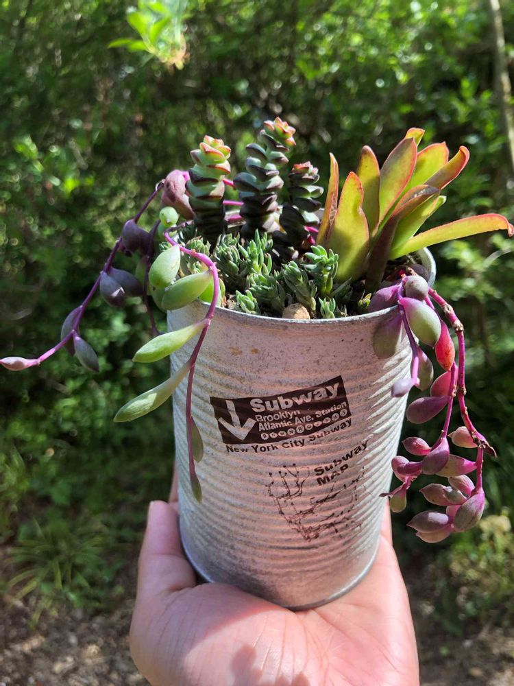 先日クリスタルさんの企画で当選したリメ缶と🥫頂いた多肉ちゃんで寄せてみました😊💗❗️