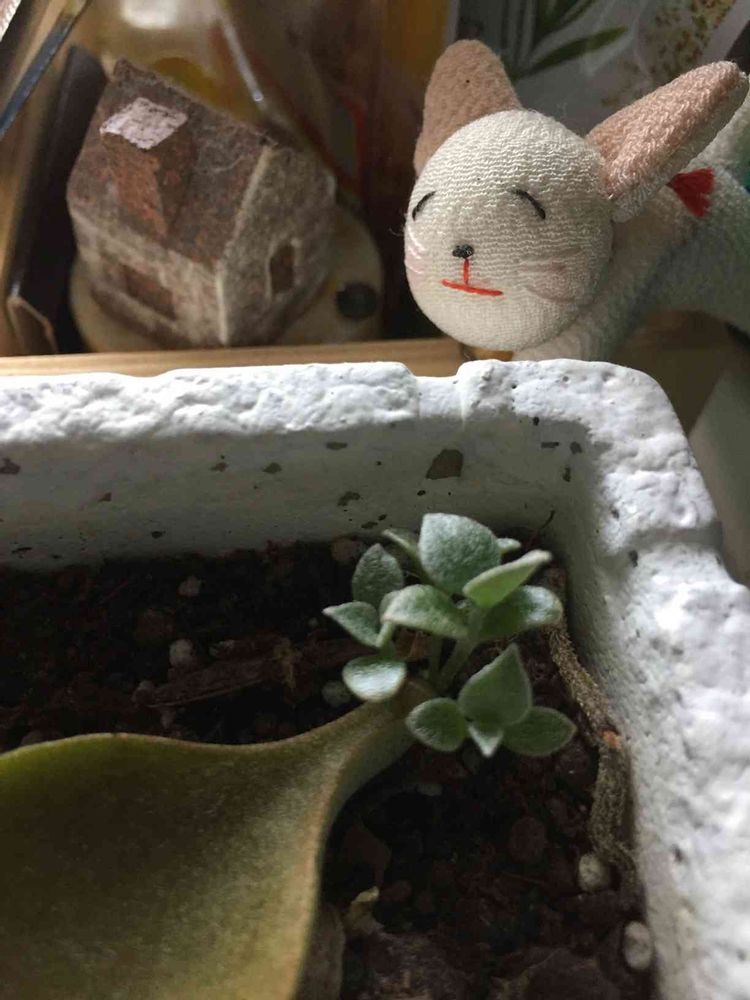 枯らした仙人の舞、何とか葉挿しで芽🌱が🥰ゆっくりで良いよ~