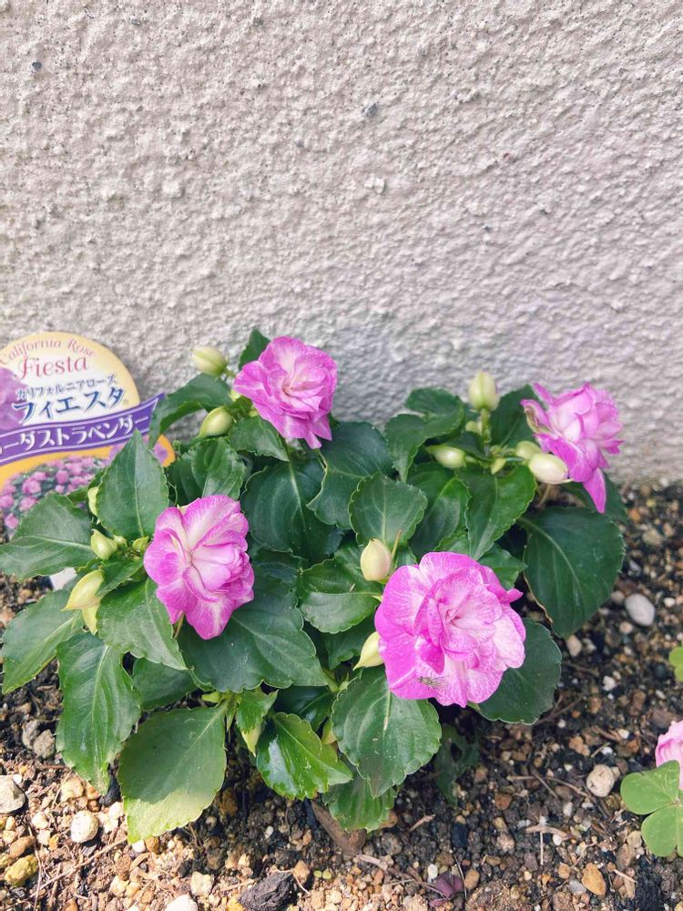 こないだ植えたインパチェンス「カリフォルニアローズ」咲き始めました♡