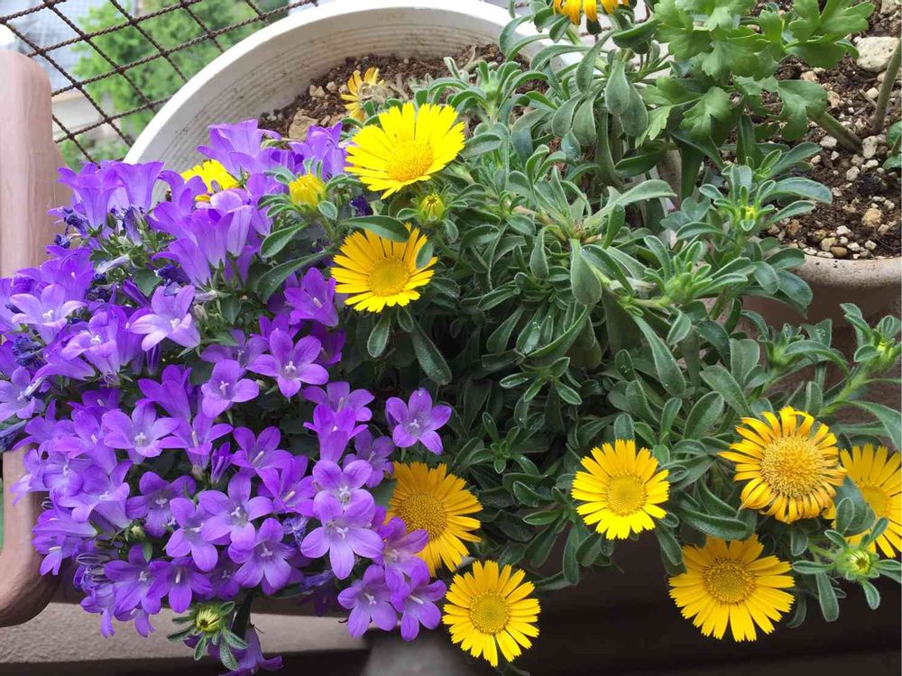 去年の母の日に旦那がくれた寄せ植えに入ってた小さな苗がこんなにワサワサ♡満開♡になった!