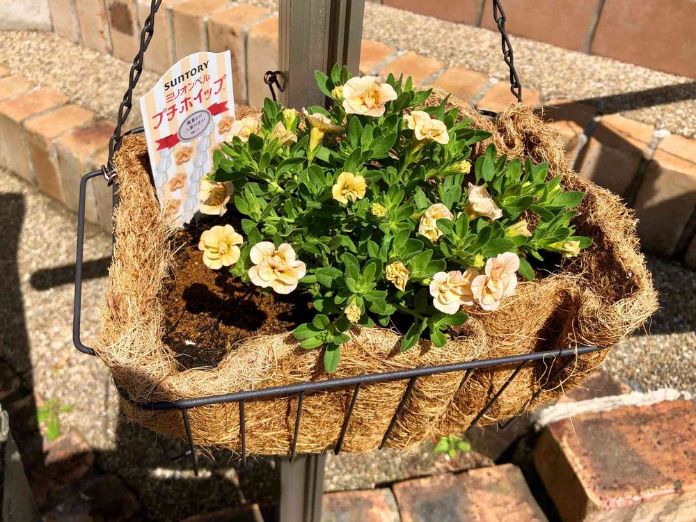 玄関前のミリオンベルプチホイップ ピーナッツバターがやっとこ咲いてきました。