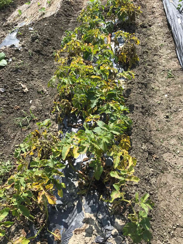 インカのめざめ、急速に葉が枯れて収穫の時期のようです。