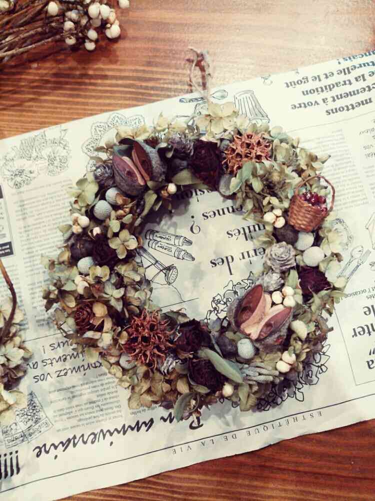 クルミとあじさいのナチュラルリース(*´﹀`*)♥