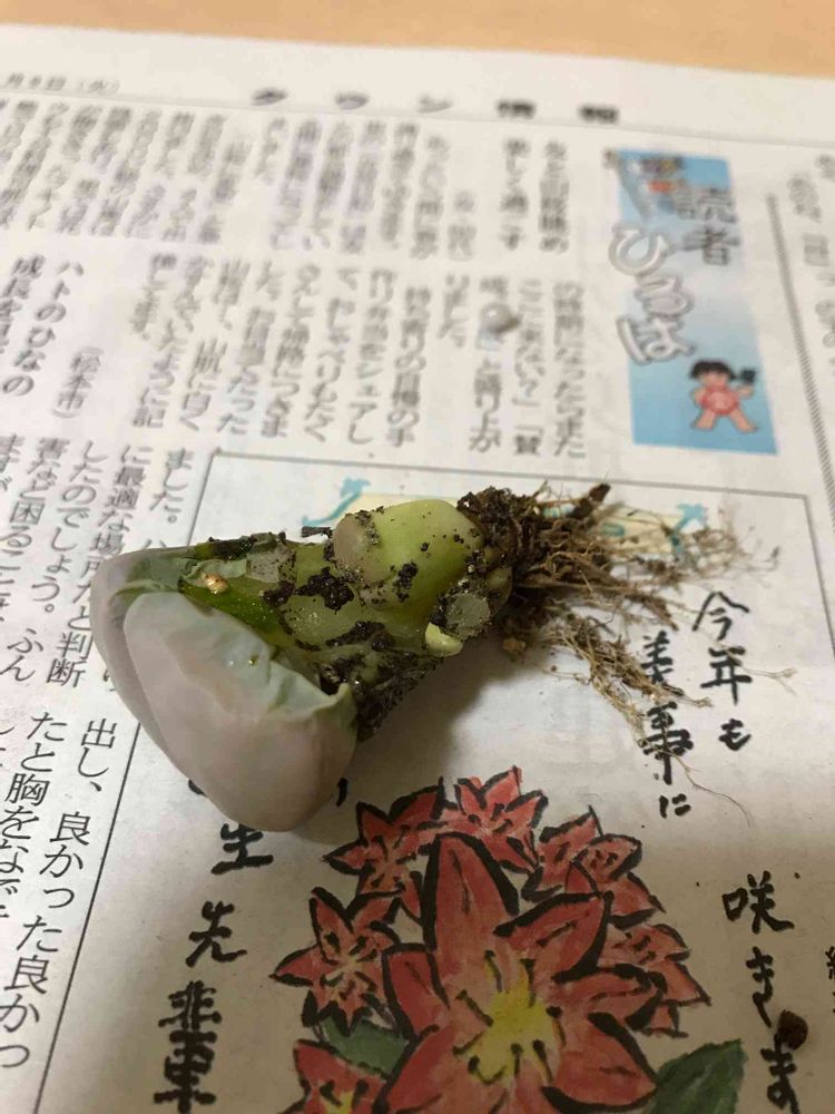 中にいた子も、まだ出てこない根の出る場所あたりがもう溶けかかってました...。