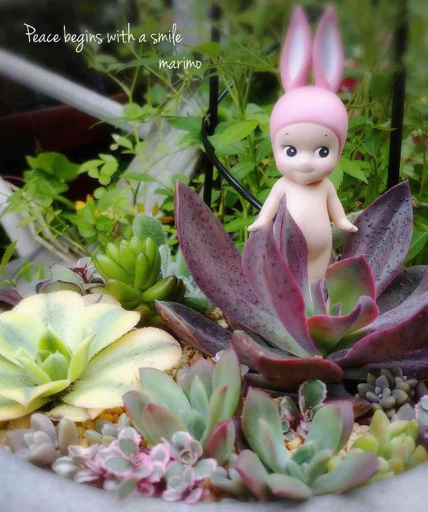 多肉の葉っぱとソニエンちゃんの被り物がよく似ていて、多肉から生まれたみたいよ👼💕