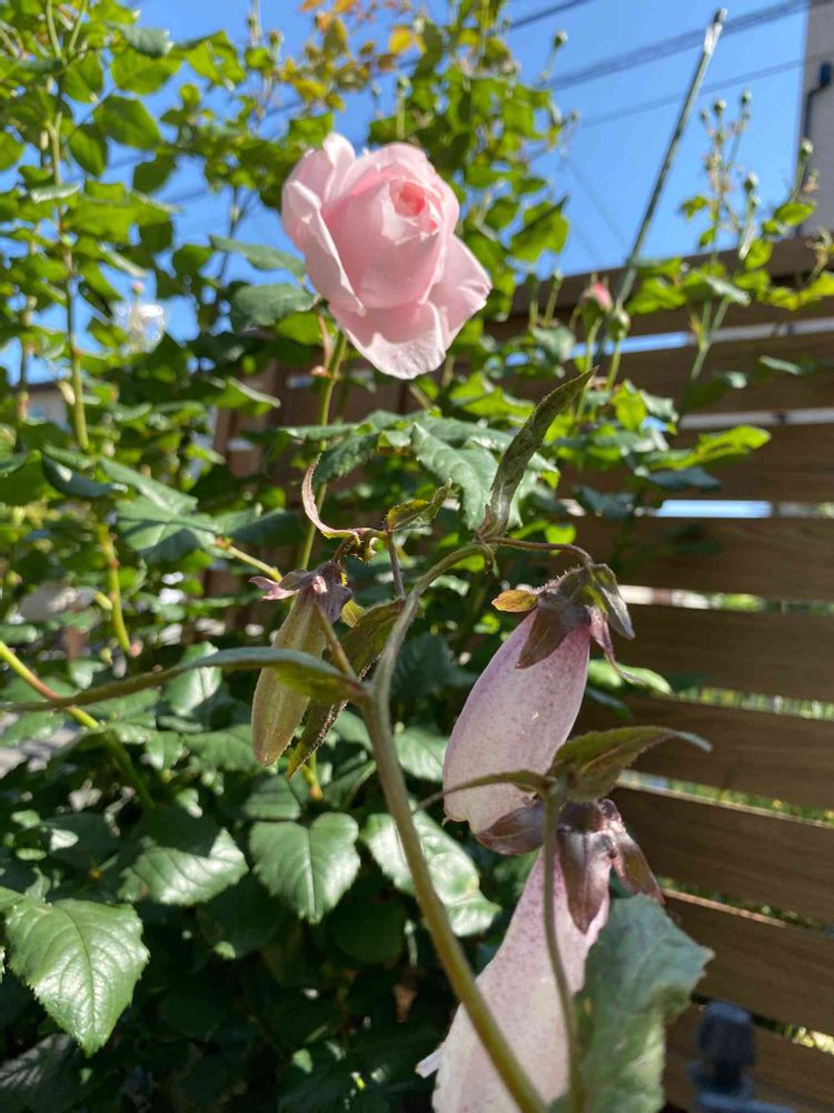 雨避けの袋を外して清々しいナエマ。花が雨で痛んでしまう前に切ろうかどうしようか延々と悩む息子笑