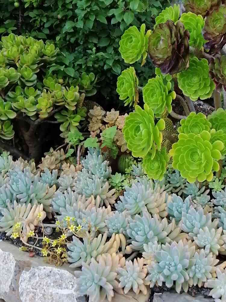 家の近所の小さな教会には多肉植物たくさんのミドリ💚な花壇があります。