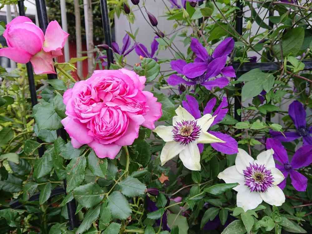 やっぱりバラの方が負けてしまうんですね😅 恐るべしクレマチス😱💦