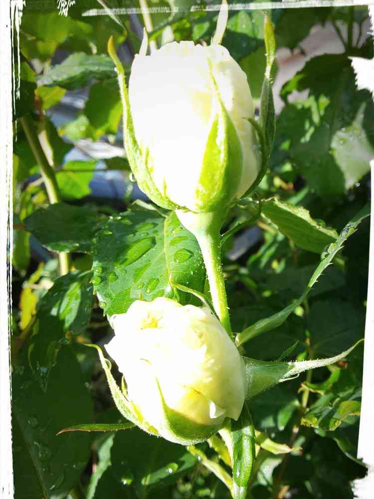 白いバラ、雨後のお日様にあたって、綺麗ですね〜😍