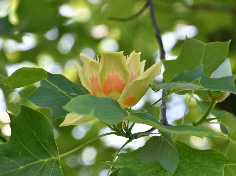 大きな木、高い所で咲いてるユリノキのお花が 撮れるのは 望遠!ですよね。