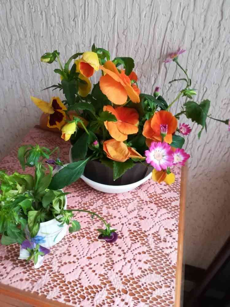 私の投稿で、切り戻し再生養生をおすすめしているサイネリアやパンジーの、切られた花をゴミにしないで、水に入れて楽しんでいます。🤗💞💞