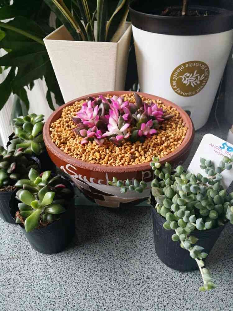 園芸店で桜吹雪とエンジェルティアーズ錦、ダイソーで吹雪の松を買っ多肉。