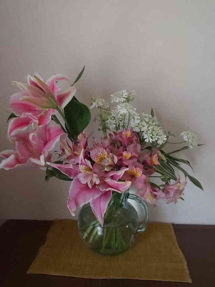 今朝のpicは昨日買ってきたお花たちを花瓶にいけました。
