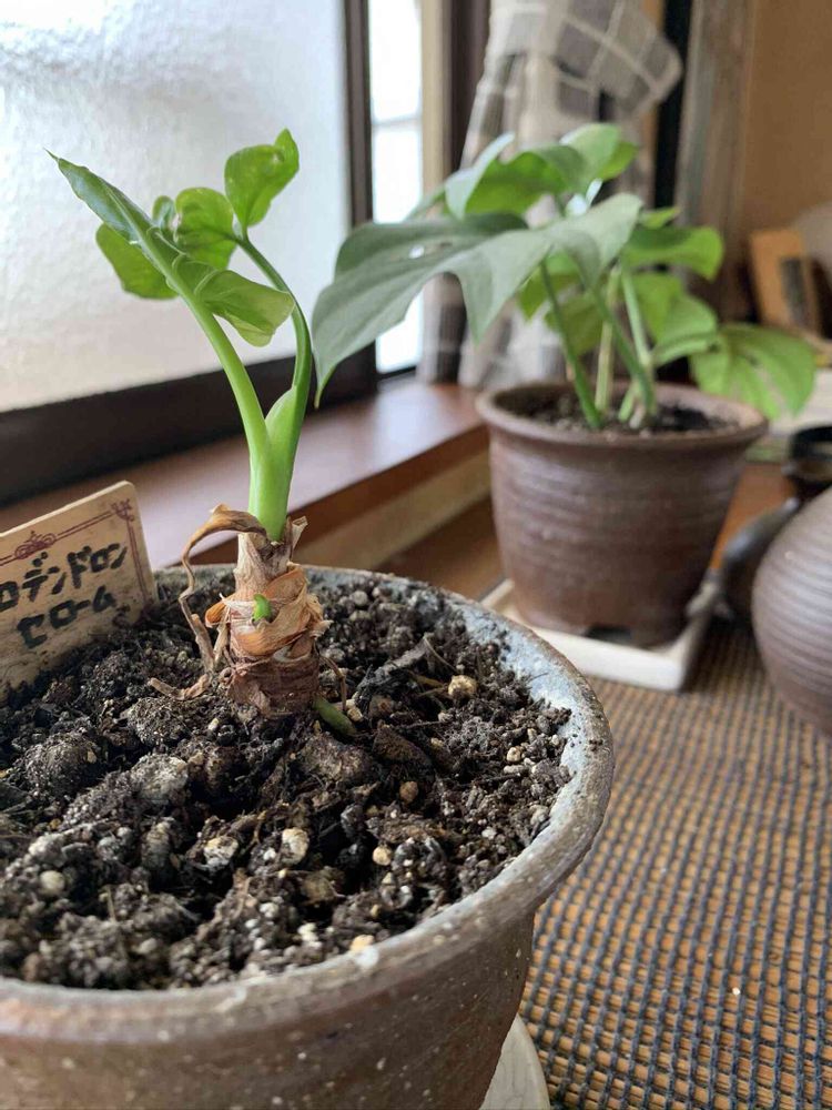 我が家のフィロデンドロンセローム君、毎年11月頃、葉枯れをして4月頃新芽を出します。🌱