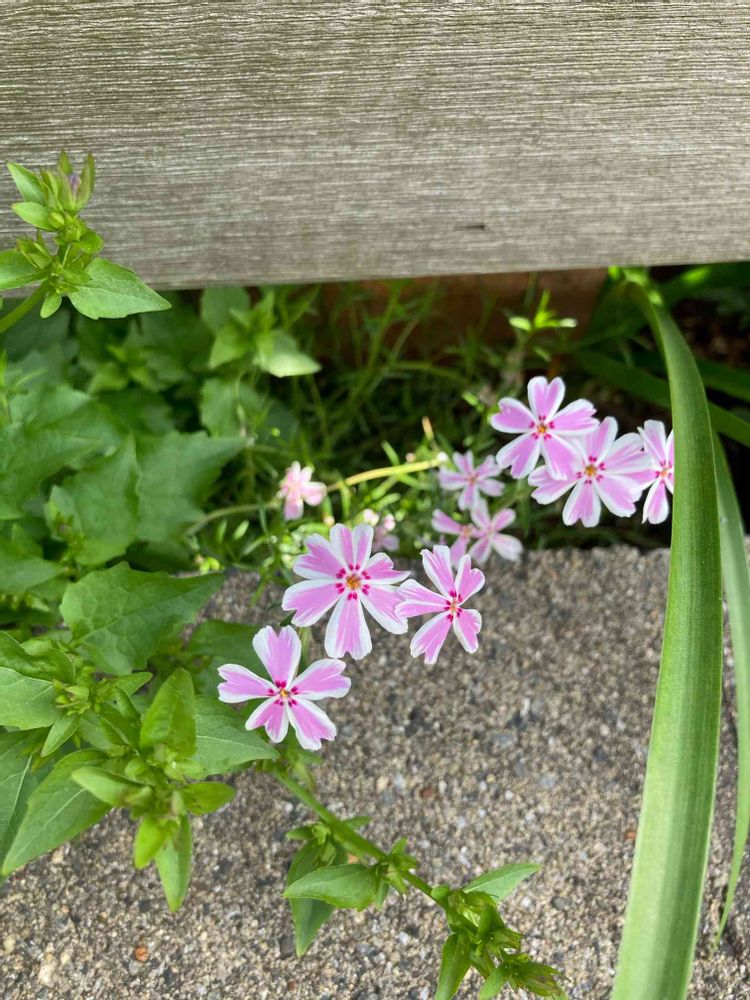 ウッドデッキの下からひっそり咲いてる、芝桜(多摩の流れ)