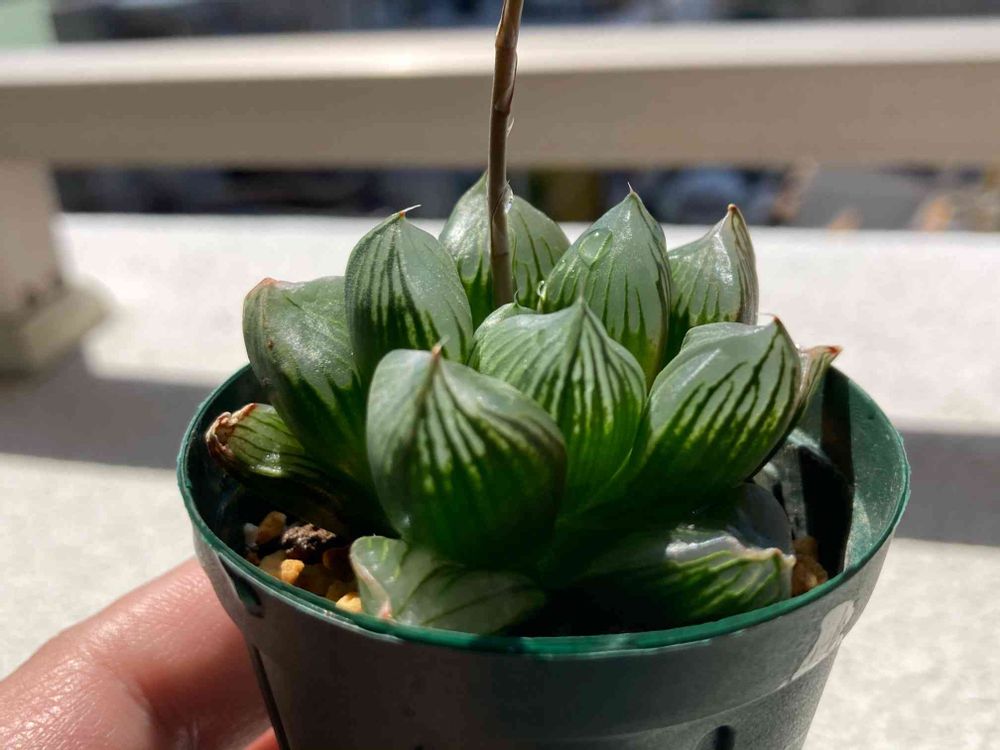 昨年買ったハオルチア 巨神兵が無事に根付きプリプリしてきました。秋には植え替えして鉢上げしないと収まんないなーと思いつつ、まずは梅雨と夏を越せるように栄養を与えています。
