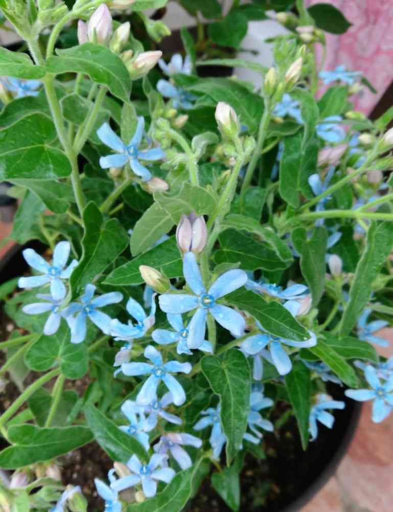 大雨に打たれて、5本の「ブルースター」💠🌿💠、