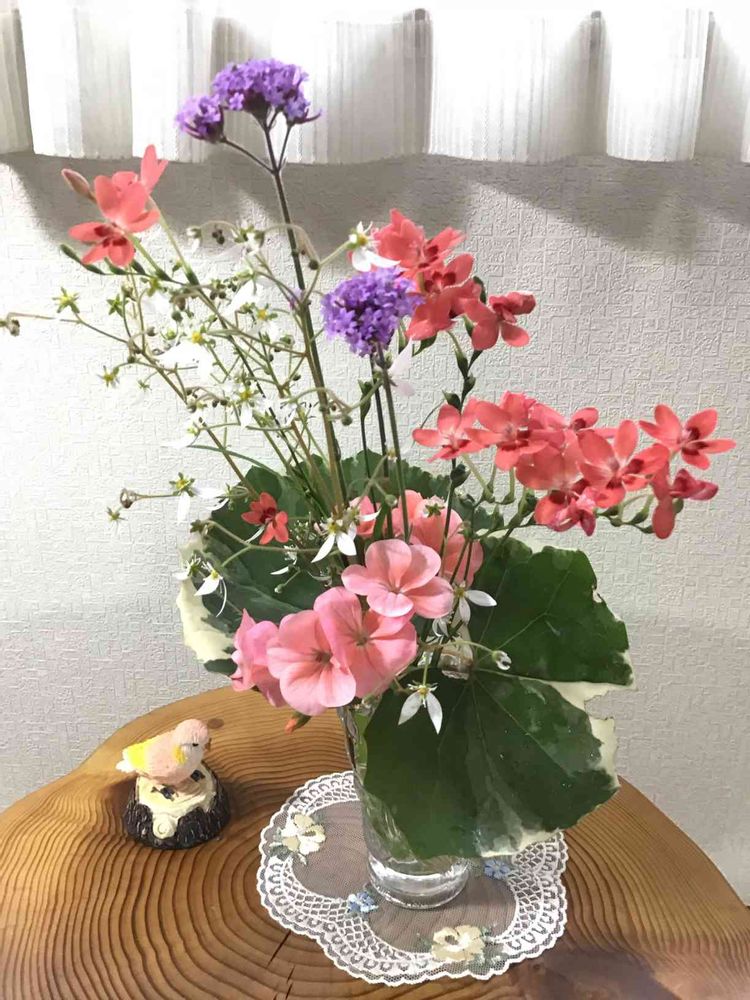とにかく、庭の 、今 咲いている小花🌸 を 集めて、合わすので、何が 出来るか 分からず、変わったものが 出来たりしますが、お金が 掛からないので、