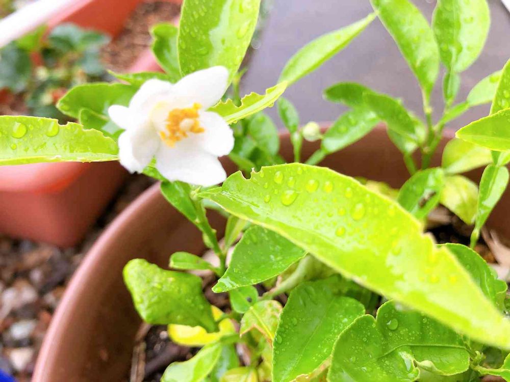 鉢植えの小さな苗に、初めて花が咲きました🤩