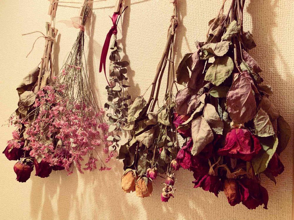 素人ですがドライフラワーにして