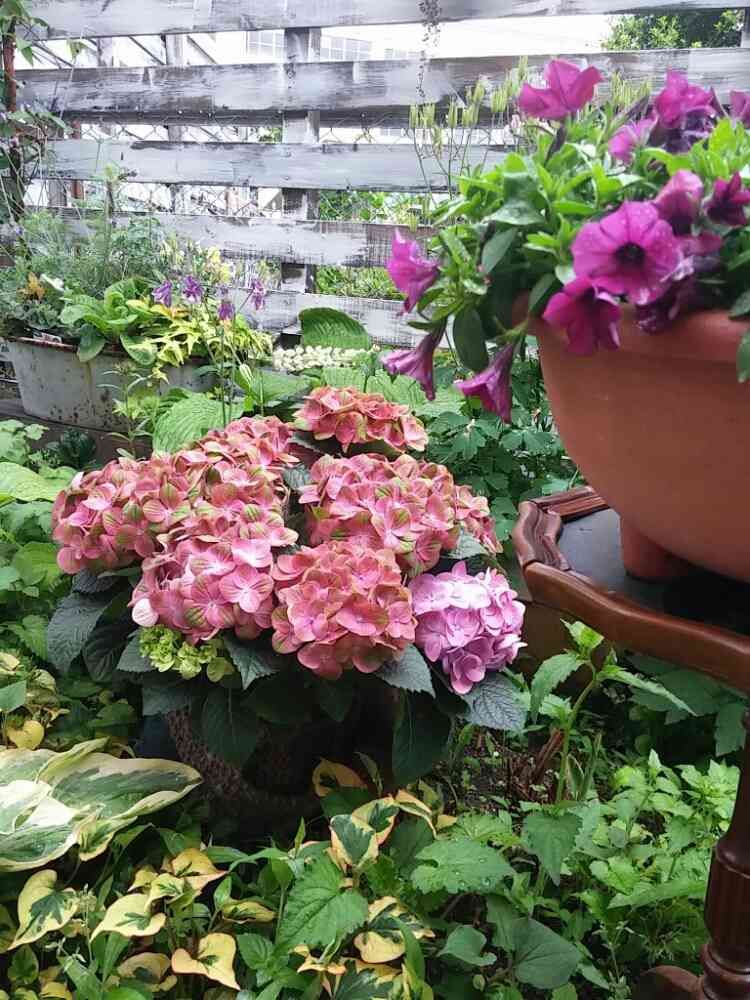 落ち着いた色のアジサイにペチュニア❤が大人🍷🎩✨ぽくて❤素敵過ぎ~💕😍😍😍
