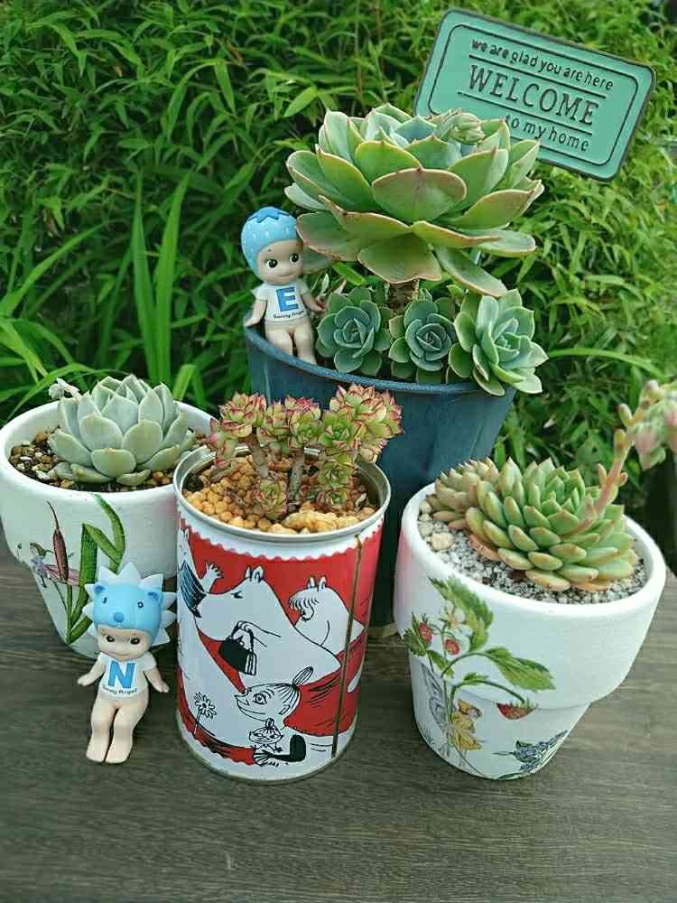 ムーミンのリメ缶も妖精🧚♂️さんの鉢も素敵💘