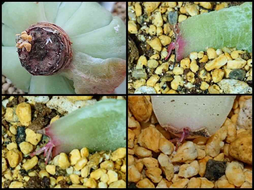 ちょっと引っ掛けちゃってひっくり返ったら発根してました。