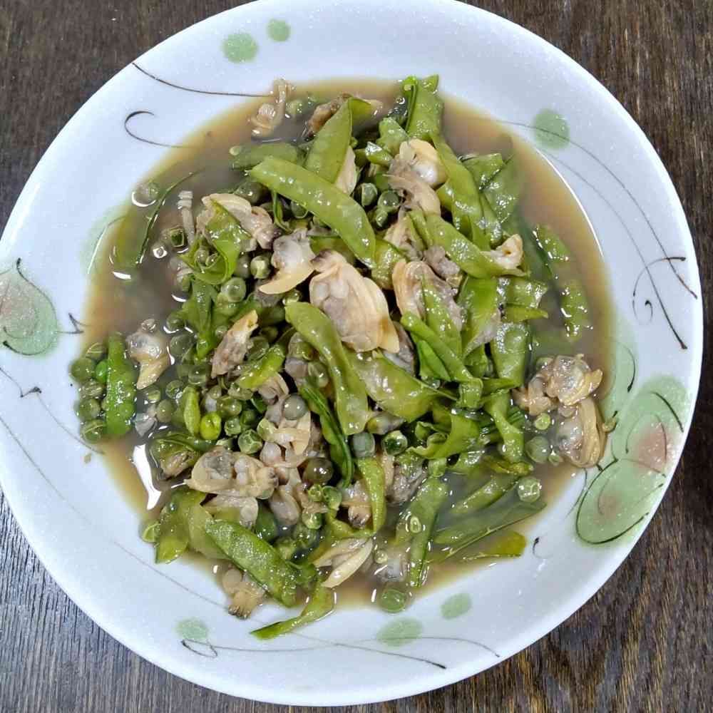 あさりの旨味がさやえんどうに染み込んで美味しいよ。