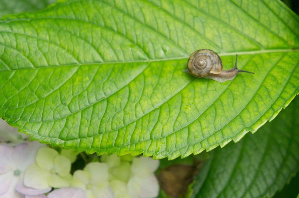 あじさいの葉は、カタツムリにとっては有毒なので食べないから、あじさいにいることはないと聞きました。実際、虫が食った葉はほぼ見たことがありません。