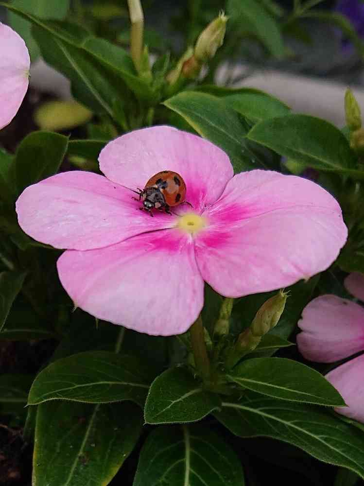 ヨッシーさんのニチニチソウ,てんとう虫さんの投稿画像
