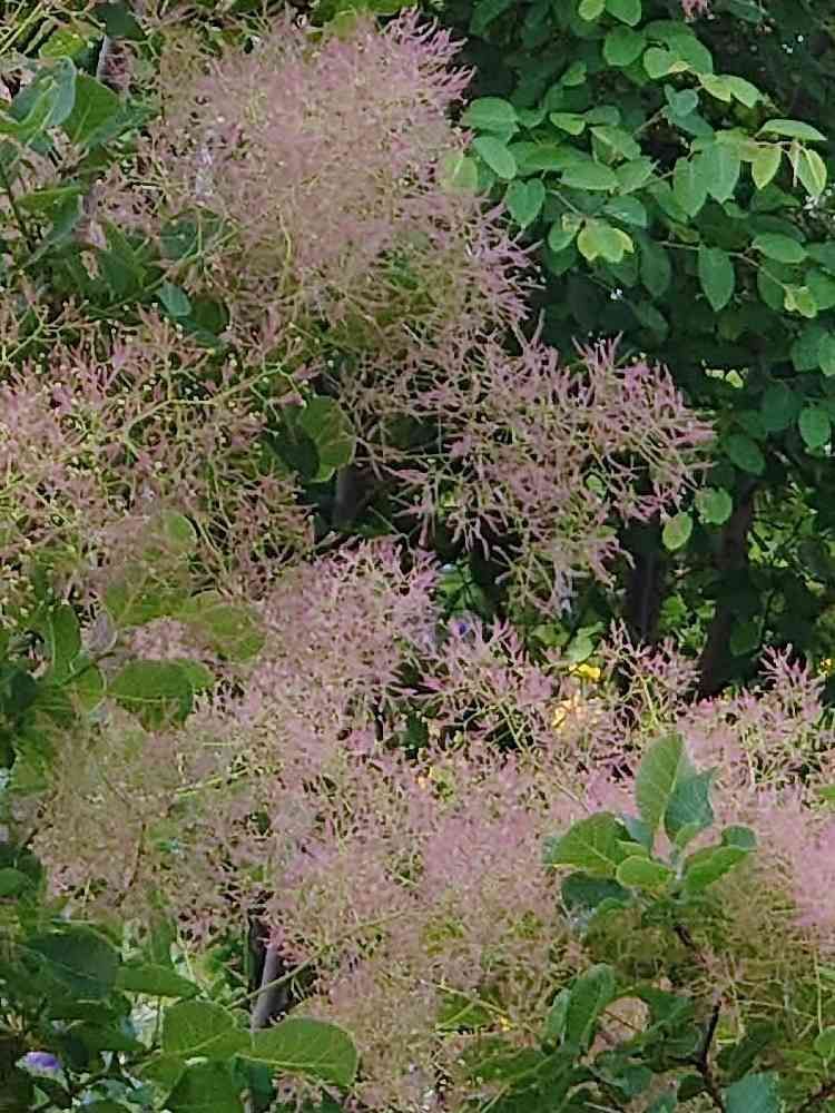 数年前から夫が不思議花が散歩道に毎年咲いている!とずっと気にしていて🤭💦遠くからみるとまさにスモーク(煙)の様で目を惹きます💓